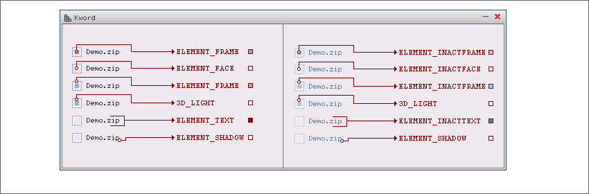 Checkbox - цвета для отрисовки флажка (переключателя, галочки и т.п.). ![]() Checkbox имеет 4 состояния: активное включен, активное выключен, неактивное включен, неактивное выключен. Цвета для отрисовки Checkbox с которым не возможно производить какие либо события, отрисо- вывается цветами с приставкой ELEMENT_INACT. 1 ELEMENT_FACE - Фон активного Checkbox элемента. 2 ELEMENT_INACTFACE - Фон неактивного Checkbox элемента. 3 ELEMENT_FRAME - Цвет внешней рамки активного Checkbox элемента. 4 ELEMENT_INACTFRAME - Цвет внешней рамки неактивного Checkbox элемента. 5 ELEMENT_SHADOW - Цвет тени от текста у Checkbox элемента. 6 ELEMENT_TEXT - Цвет текста активного Checkbox элемента. 7 ELEMENT_INACTTEXT - Цвет текста неактивного Checkbox элемента. 9 3D_LIGHT - Цвет внутренней световой обводки, для придания трехмерности. ПРИМЕЧАНИЯ: ELEMENT_SHADOW - этот цвет рекомендуется использовать для неактивного Checkbox, но не запрещается использовать для активного Checkbox. ELEMENT_FACE - этот цвет испульзуется для отрисовки флажка, для активного включенного состояния. ELEMENT_INACTFACE - этот цвет испульзуется для отрисовки флажка, для неактивного включенного состояния. ГРАДИЕНТНАЯ ЗАЛИВКА - нерекомендуется к использованию для отрисовки Checkbox. 3D_LIGHT - можно как использовать, так и пренебрегать его применением. |